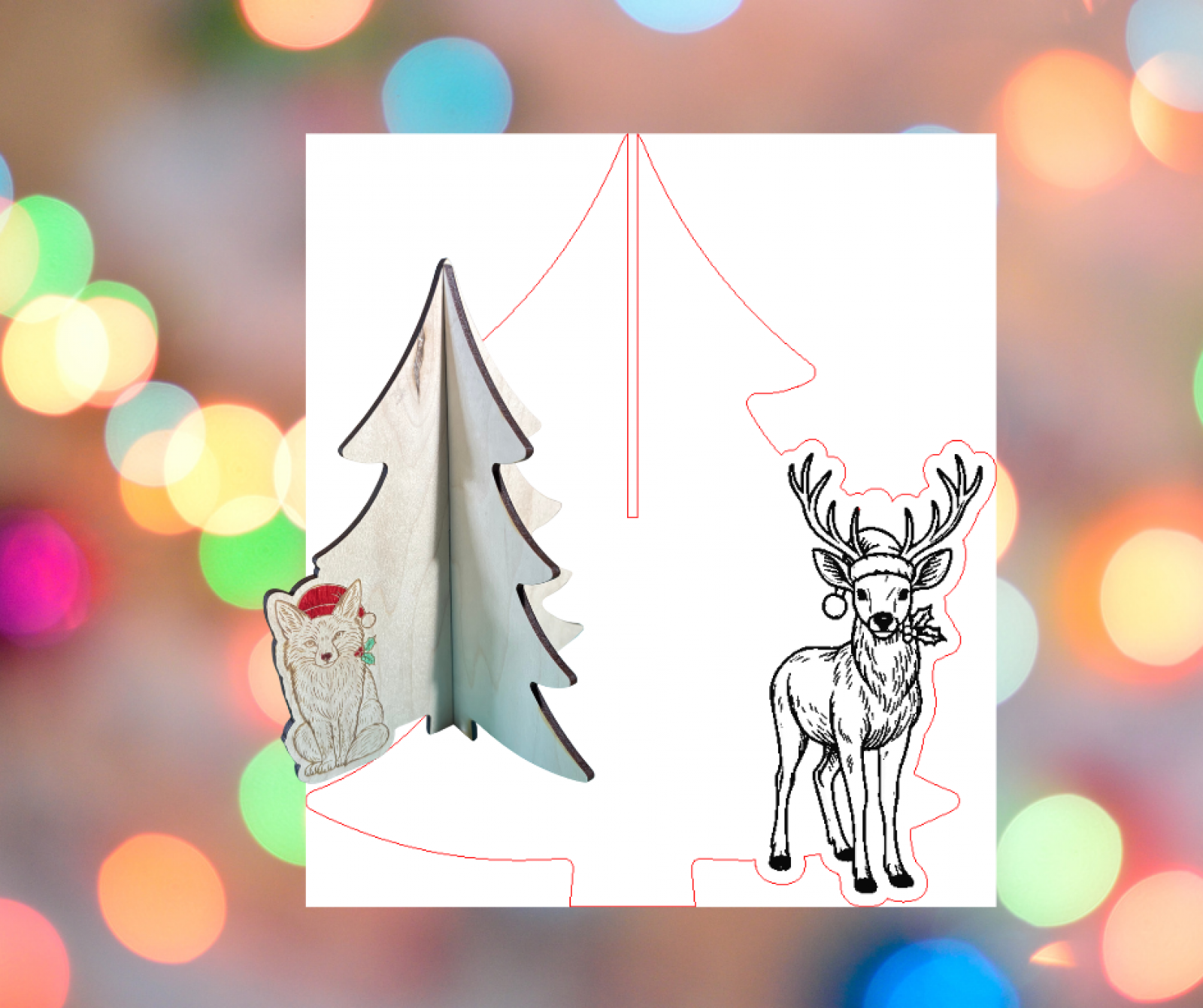 Each tree is made with 1/8” wood or .125.  The tree  stand about 10” tall but you can adjust for your own needs by enlarging or decreasing the trees just be sure to adjust the slot. If your wood is thicker or thinner and you like the size just adjust the slots