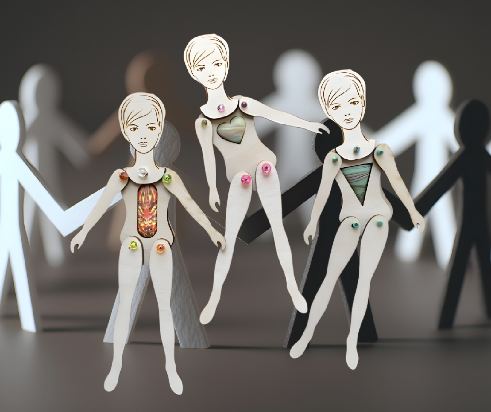 These wall people, formerly called wall dolls, are fun to make and gift. I used Chicago screws on larger people brads on small ones, to put them together. This way you can “pose” your person making the fun go even further.